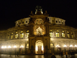 設計者ゼンパーの名を冠したこの劇場は1826年に完成するものの1度火災で焼失し再建されたが、さらに1945年の大空襲で焼失し、その後約40年をかけて建て直された。