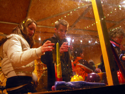 クリスマスの時期は必ずワイマールに来て、市を開いているのだとか。 夜も電球が輝く一般的なマーケットとは違い、たい松の明かりだけでほの暗く、なかなか本格的だ。