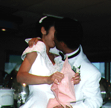 やがて、ダンスタイム。新婦のご両親も軽快なステップをご披露。次第に、若い人達のノリで祝宴は最高潮に達する。船外にはハワイ名物の真っ赤な夕日が空を焦がす。その折角の美しい夕日を見ることも忘れてしまうくらい、披露パーティは華々しく楽しく賑やかに続いた。