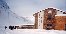 シュルンスのあるモンタフォンの谷には、当時まだリフトはありませんでした。彼はシールを着けて山小屋に登り、時には一月以上もそこで過ごしました。その一つがここに写真のあるマドレーナー・ハウスです。