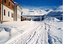 この山小屋は、今では、ジルヴェレッタ湖という人造湖の直ぐ下にあります。夏はバスが通っていますが、冬はゴンドラで途中まで上がり、ダム建設に使われたトンネルを車で抜けて行きます。その為、今年は2月3日まで閉められていました。