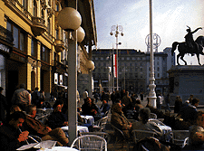 この通りを南に出た所が共和国広場(写真左)で、ここから南へ駅まで広がっているのが下町(Donji